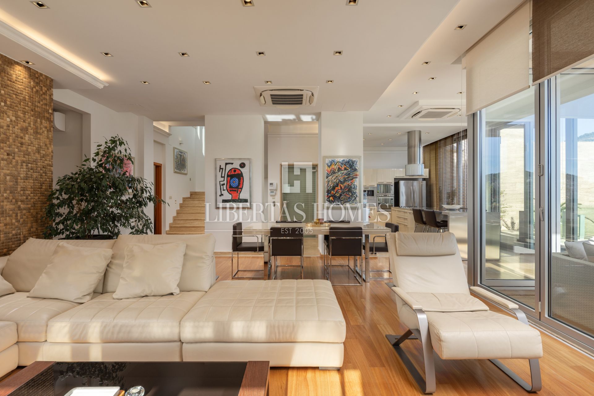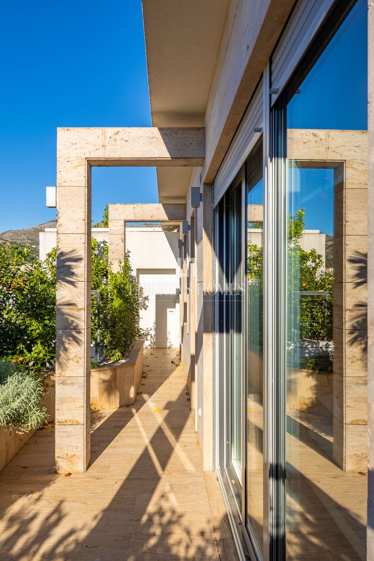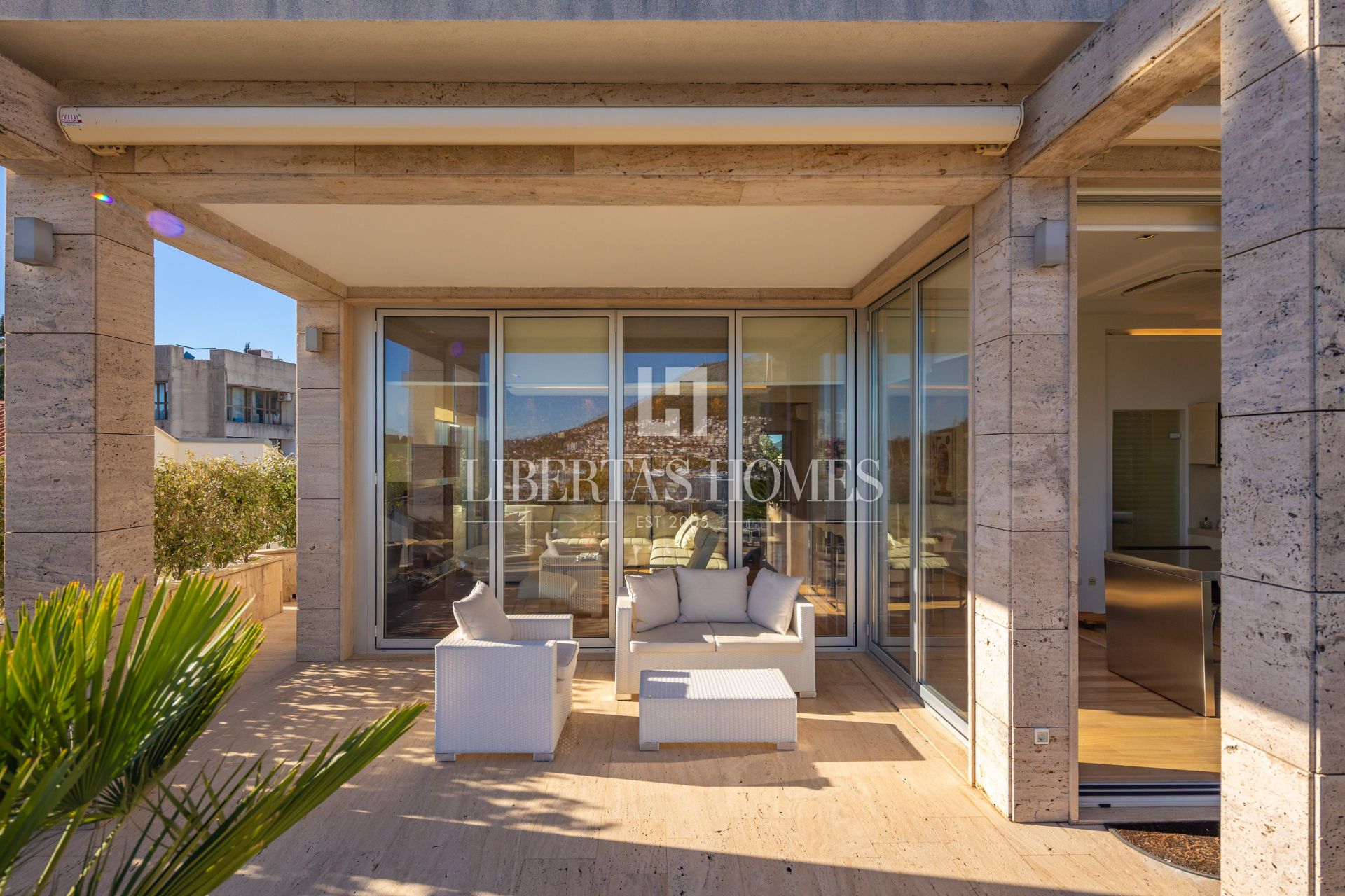 Every detail of the interior has been designed with sophistication and functionality in mind. Large glass walls connect the indoor spaces with the terraces, allowing for full enjoyment of Mediterranean light and views from every corner of the home.