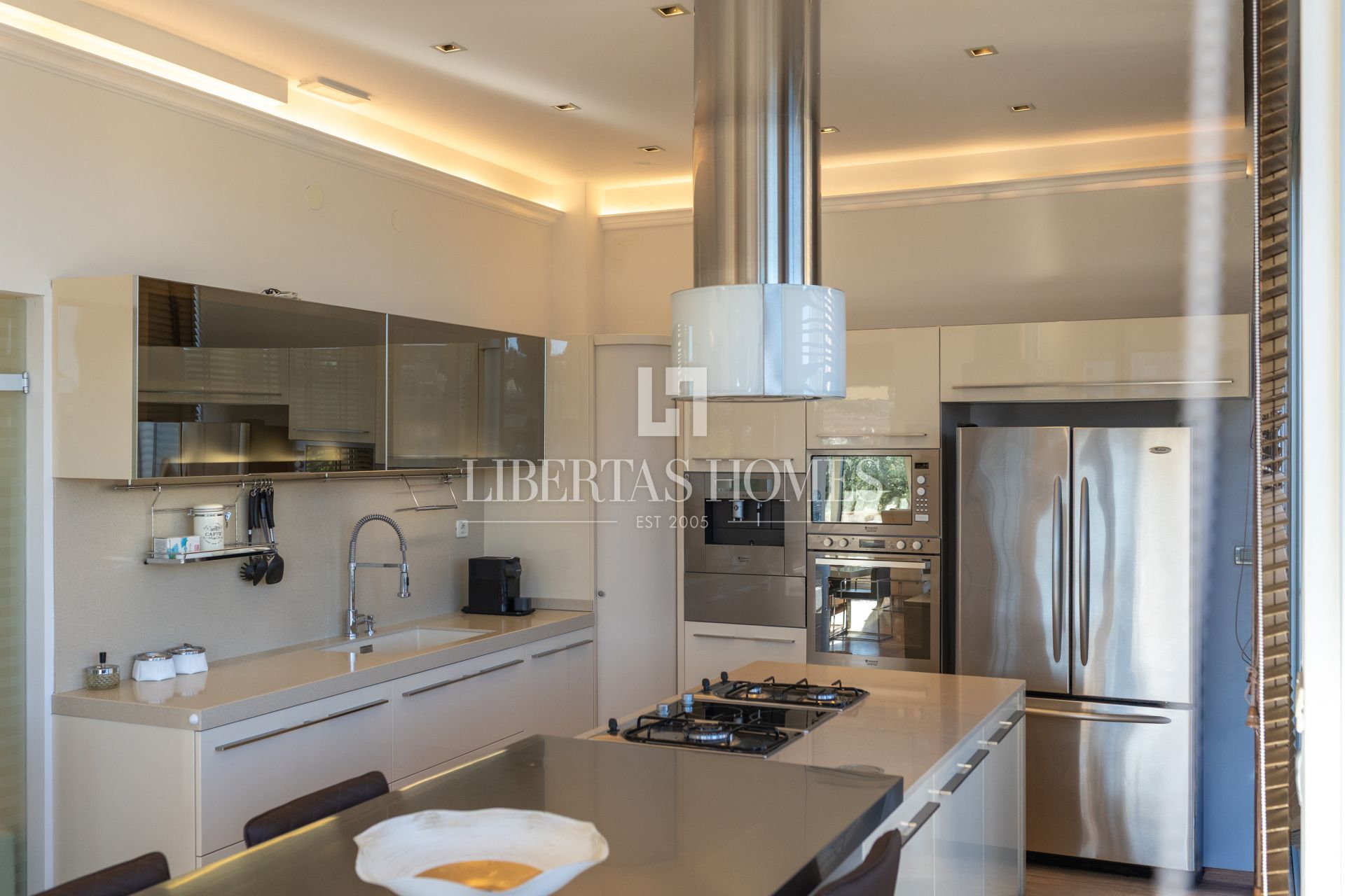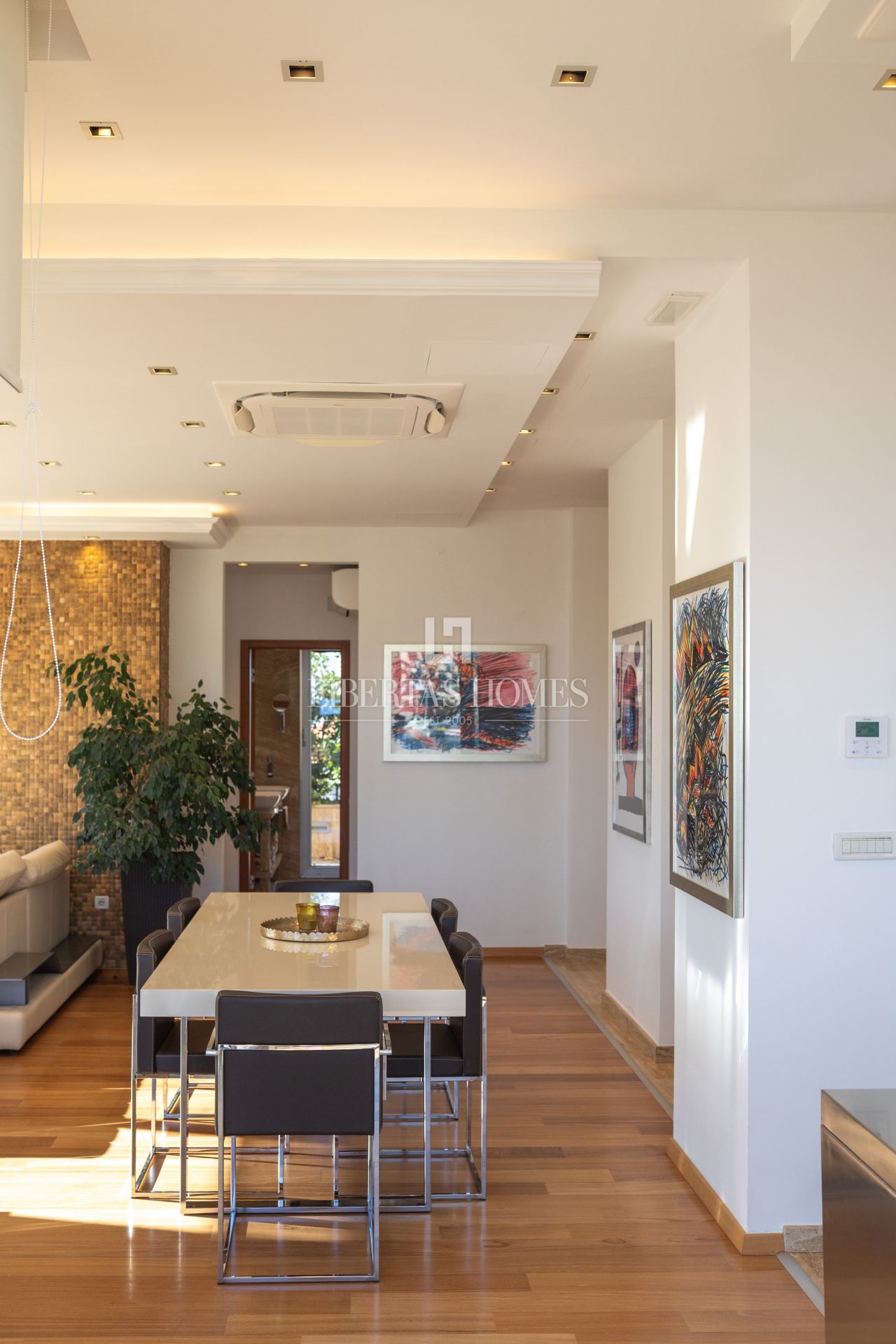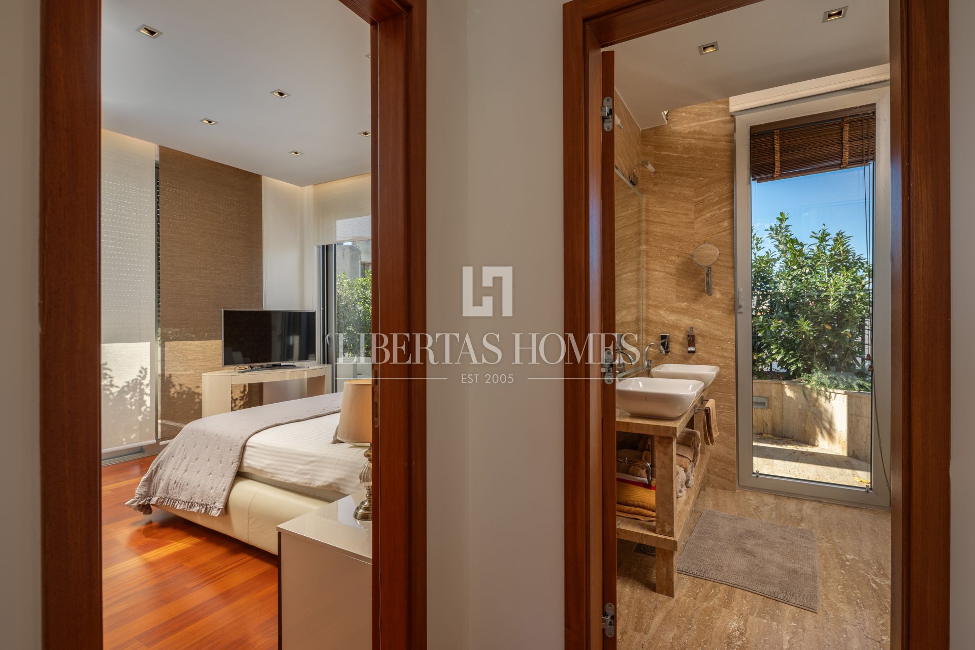Every detail of the interior has been designed with sophistication and functionality in mind. Large glass walls connect the indoor spaces with the terraces, allowing for full enjoyment of Mediterranean light and views from every corner of the home.